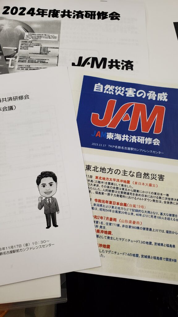 2023年11月17日(金)名古屋市で開催された「JAM東海自家共済研修会」に厚生部部長と書記局で出席して参りました。