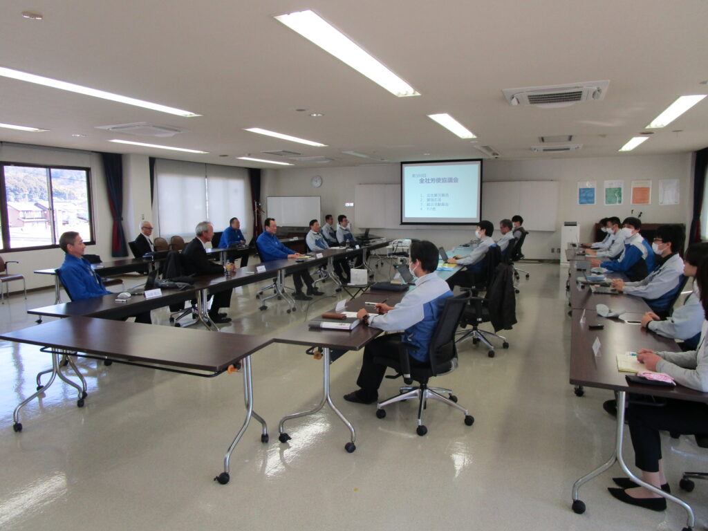3月14日(木)に藤原社長をはじめとする経営幹部の方々と全執行委員で全社労使協議会を開催しました。