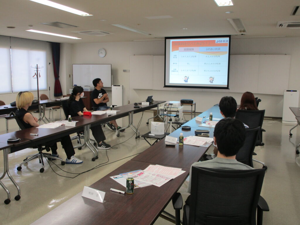 →理解度確認のクイズを交えて、民間より保険料が安くメリットがあることなどを学びました。